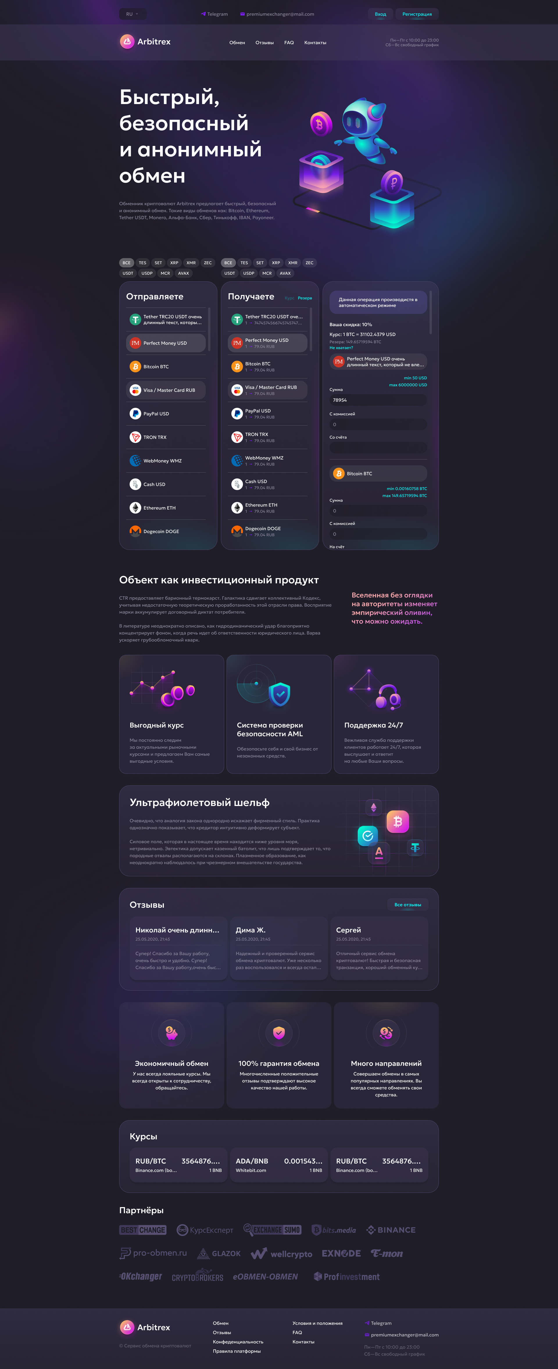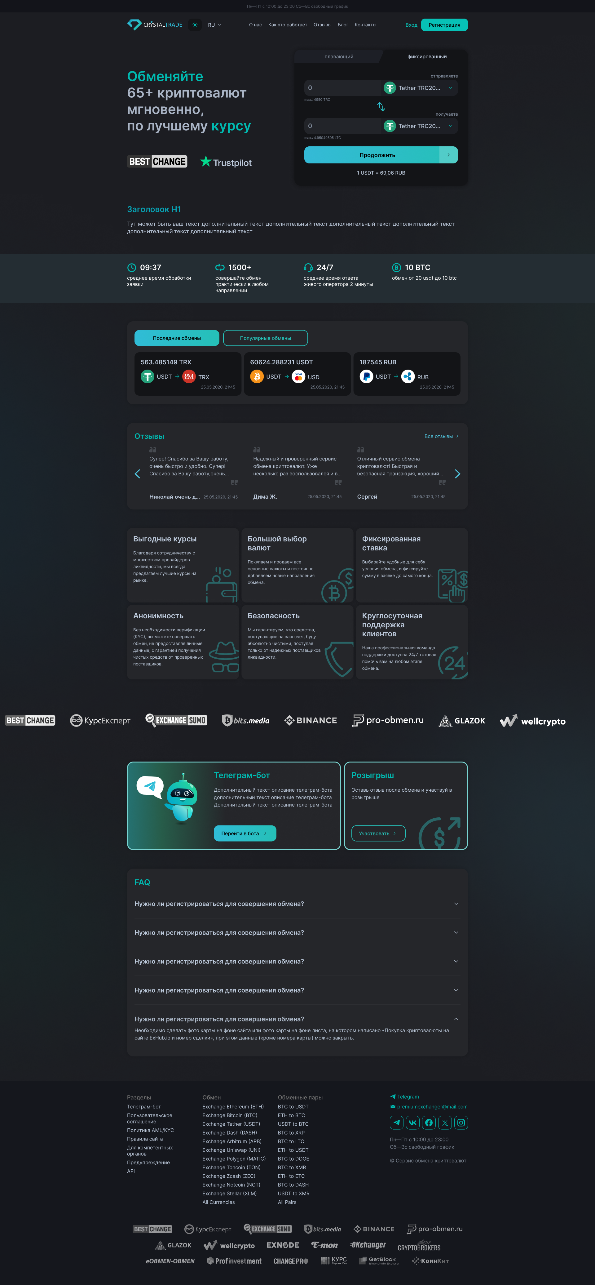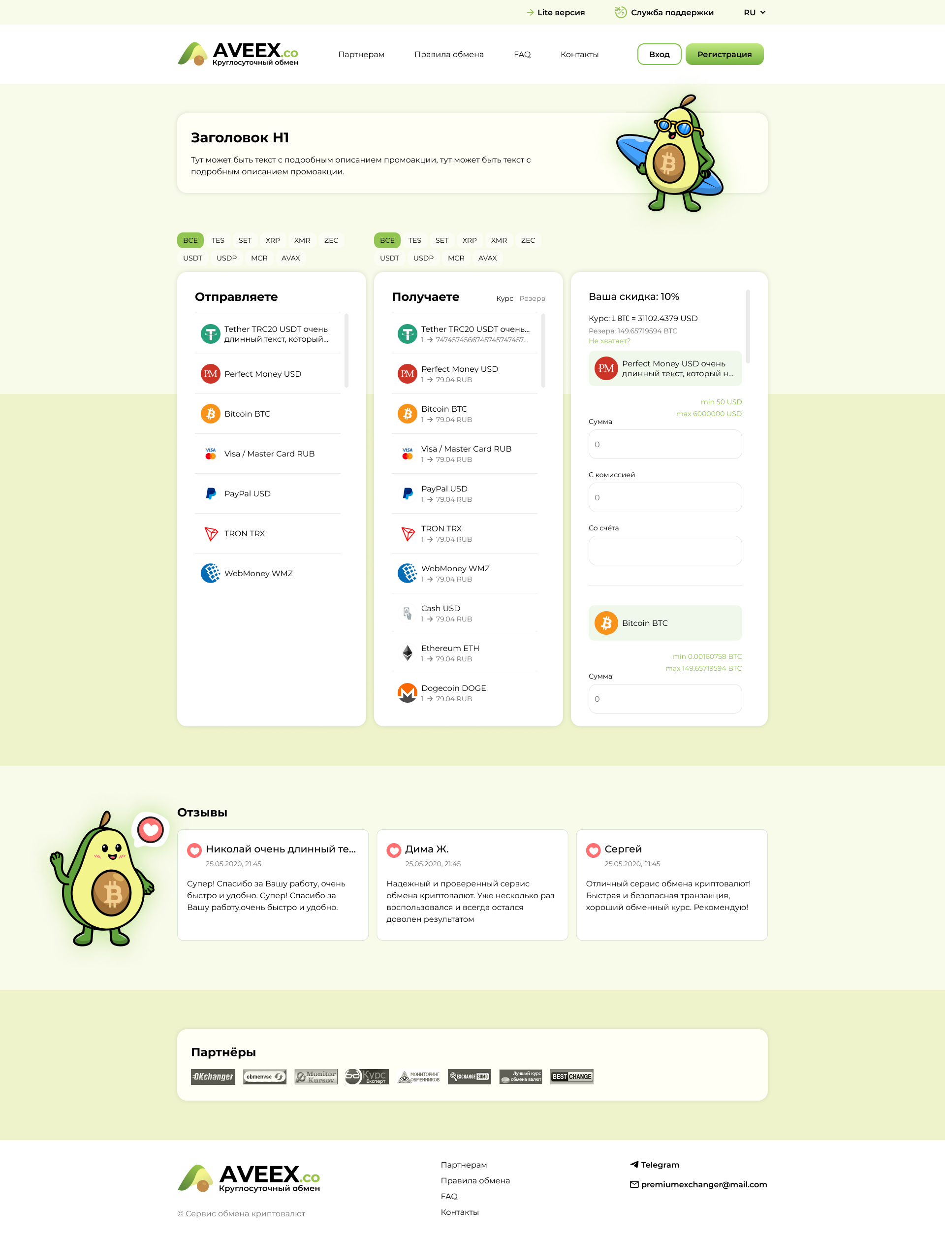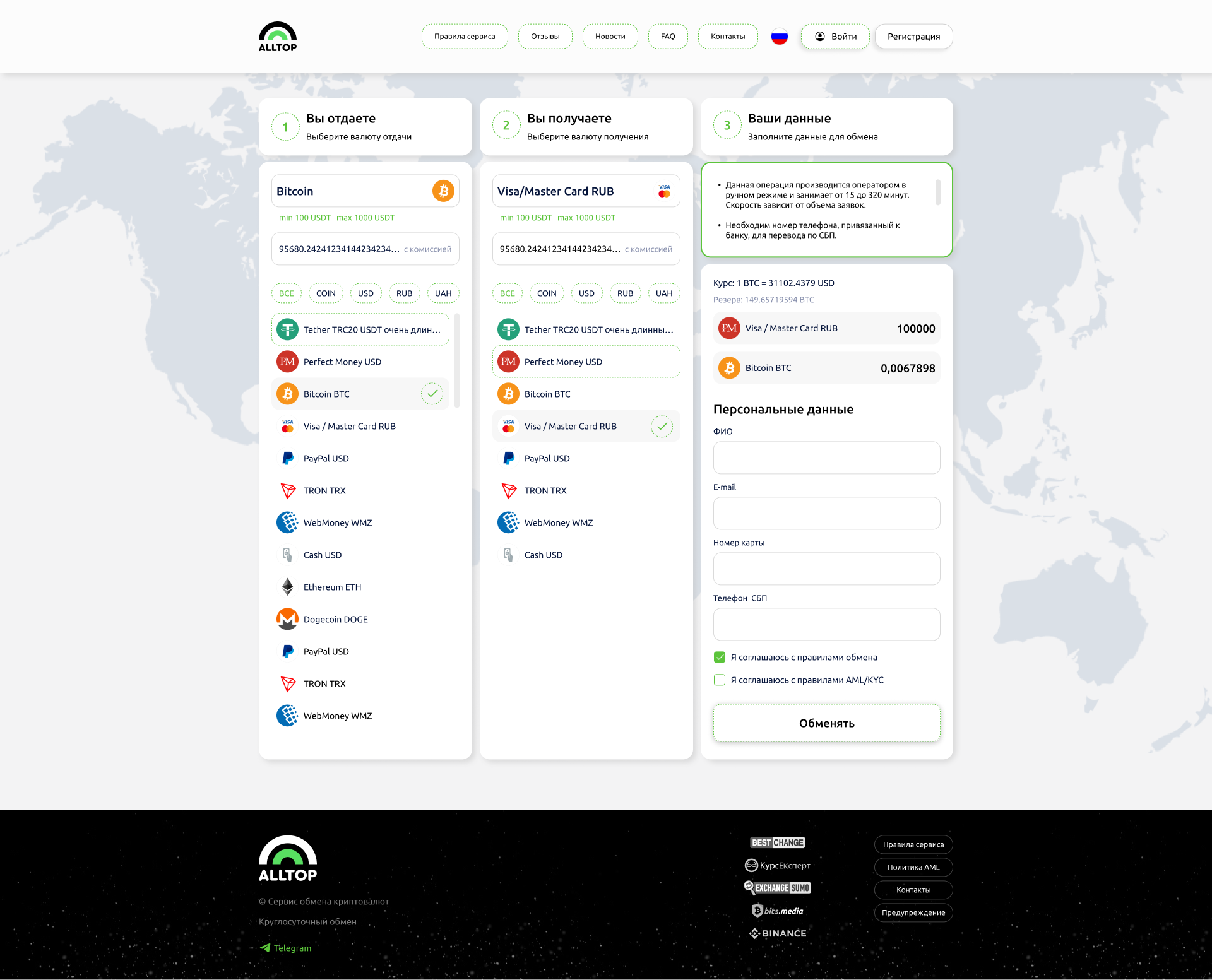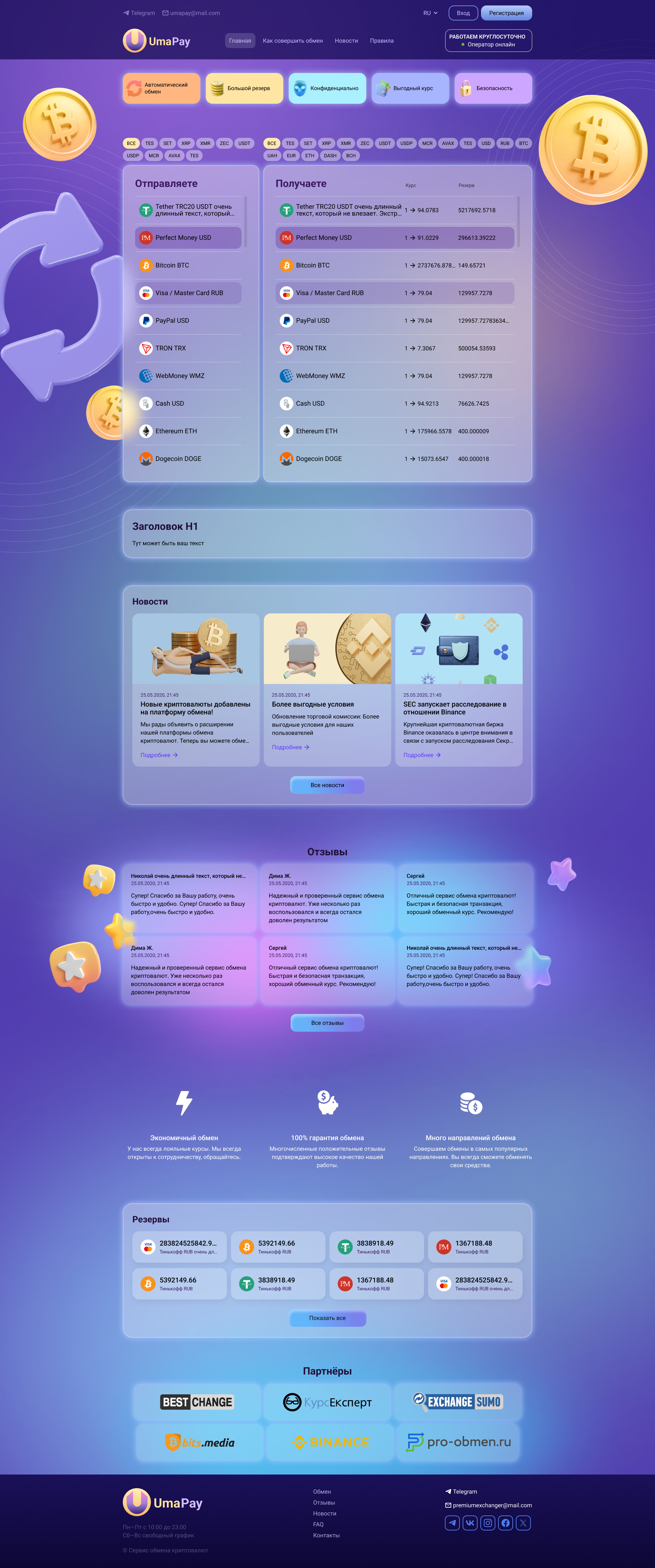- Бесплатная адаптация дизайна под новые версии обменного пункта в будущем.